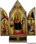 [From Greek triptukhos, threefold : tri-, tri- + ptux, ptukh-, fold.]  (click for a larger image) triptychc. 1336 painting, Madonna and Child with Saints Peter, Paul, Augustine, and Anthony, attributed to Taddeo Gaddi (1300?-1366) |