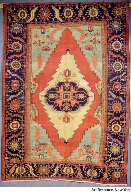 A durable, finely woven Persian rug typically having a large central, often diamond-shaped medallion design with intricate background decoration.