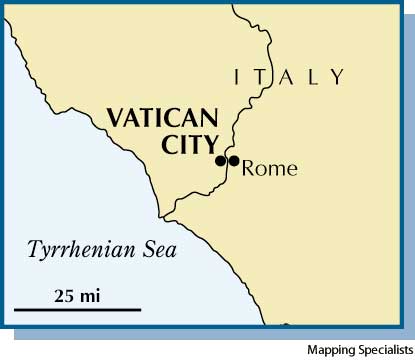 Tweet An independent papal state on the Tiber River within Rome, Italy. Created by the Lateran Treaty signed by Pope Pius XI and Victor Emmanuel III of Italy in 1929, it issues its own currency and postage stamps and has its own newspaper and broadcasting facilities. The government is run by a council of cardinals who are responsible to the pope. ![]() (click for a larger image) Vatican City |