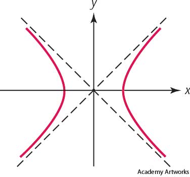 n. pl. hy·per·bo·las or hy·per·bo·lae (-lē) A plane curve having two branches, formed by the intersection of a plane with both halves of a right circular cone at an angle parallel to the axis of the cone. It is the locus of points for which the difference of the distances from two given points is a constant. [New Latin, from Greek huperbolē, a throwing beyond, excess (from the relationship between the line joining the vertices of a conic and the line through its focus and parallel to its directrix); see HYPERBOLE.] ![]() (click for a larger image) hyperbolaThe equation of this hyperbola is x2 - y2 = 1. |