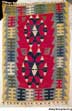A pileless, tapestry-woven rug or other textile with geometric designs in rich, brilliant colors, traditionally made in parts of the Middle East and neighboring regions.