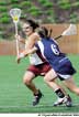 [Canadian French la crosse, from French (jeu de) la crosse, (game of) the hooked stick, from Old French croce, crosse, crosier, of Germanic origin.]  (click for a larger image) lacrosseBeth Rhodey of Salisbury University (left) and Cat Serpe of Franklin & Marshall College (right) at the NCAA Division III 2009 Women's Lacrosse Championship Salem, Virginia |