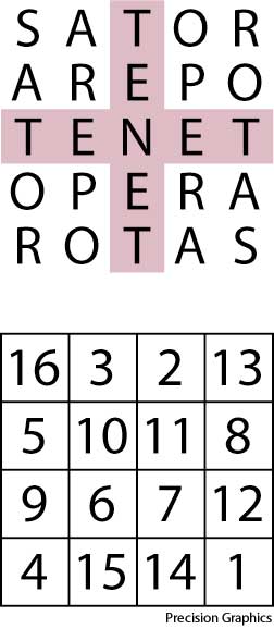 Tweet n. 1. A square that contains numbers arranged in equal rows and columns such that the sum of each row, column, and sometimes diagonal is the same. 2. A similar square containing letters in particular arrangements that spell out the same word or words. ![]() (click for a larger image) magic squaretop: the SATOR letter square bottom: the number square from Albrecht Dürer's engraving Melencolia I |