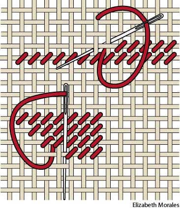 Tweet n. A short diagonal embroidery stitch that forms close, even, parallel rows to fill in a pattern or background. ![]() (click for a larger image) tent stitch |