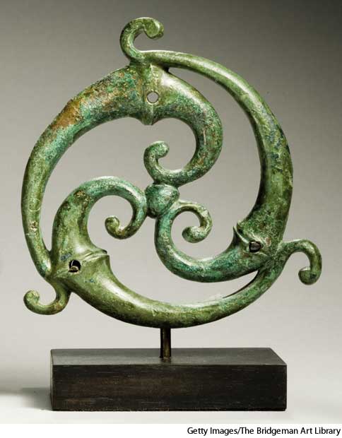 [New Latin, from Greek triskelēs, three-legged : tri-, tri- + skelos, leg.]  (click for a larger image) triskelion3rd-century bc Roman bronze appliqué |